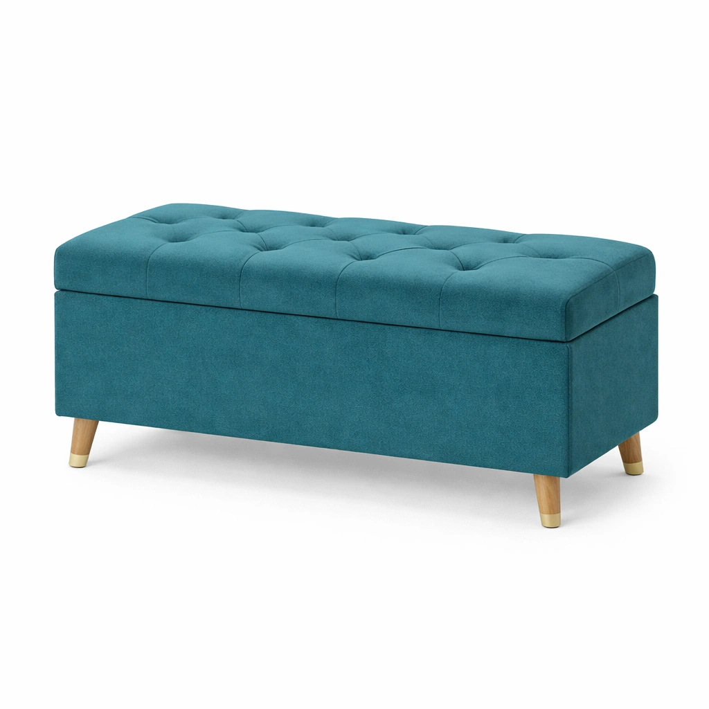 Sitzbank mit stauraum aus stoff petrol 100x40x45 cm