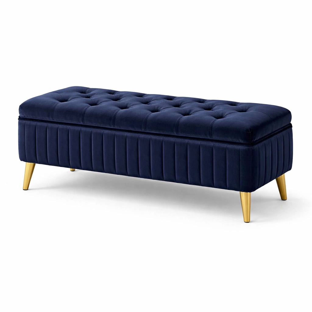 Sitzbank mit stauraum aus samt dunkelblau 140x40x45 cm