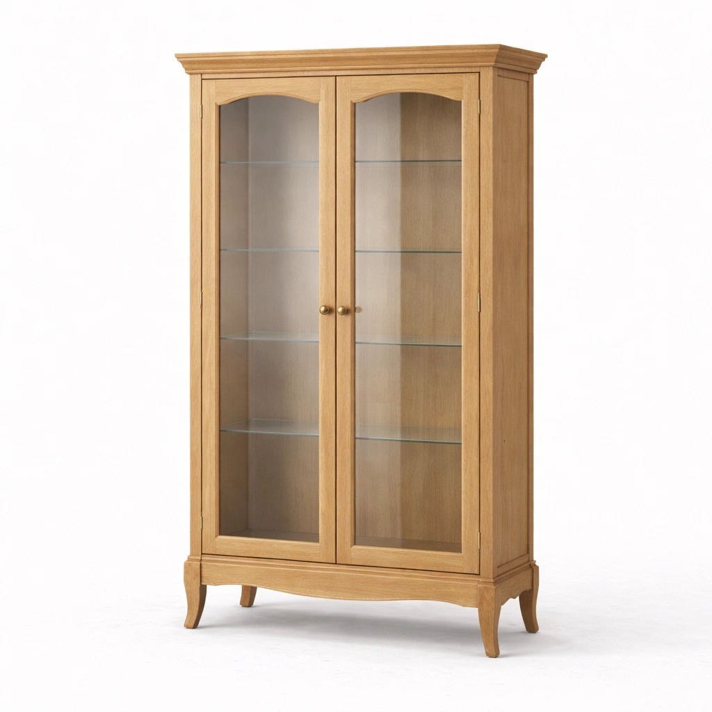 Vitrine aus eichenholz mit gehärtetem glas braun