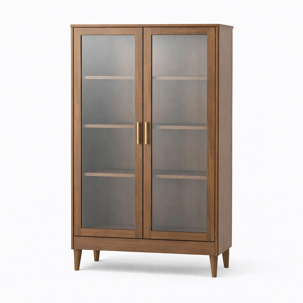 Vitrine aus eichenholz mit gehärtetem glas braun